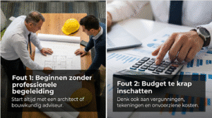 De grootste fout is beginnen zonder architect of bouwkundig adviseur. Veel mensen denken dat ze dat kunnen besparen. Ze vinden een aannemer, vertellen wat ze willen en gaan ervan uit dat het goed komt. Dat gaat regelmatig mis.